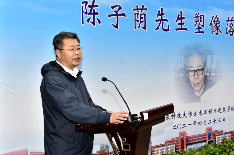 校友、塑像捐建者单德勇在致辞中表示,作为土建人、山科人,要以陈子荫先生为榜样,大力发扬艰苦奋斗的老黄牛精神,将汗水流洒在大地上,把奋斗书写在时间里,驰而不息,久久为功,在新时代创造新的辉煌。
