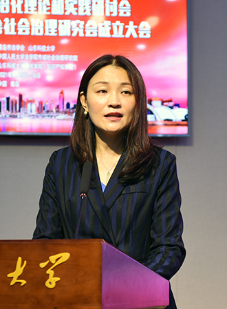 青岛市委政法委副书记刘祝三出席会议并讲话,beat365正版唯一官网党委常委、宣传部部长李克周出席会议并致欢迎辞。会上,青岛市法学会专职副会长白雪青宣读了青岛市法学会《关于设立青岛市法学会社会治理研究会的批复》文件并主持研究会选举程序,会议选举beat365正版唯一官网文法学院(知识产权学院)院长孙法柏担任青岛市法学会社会治理研究会首任会长。