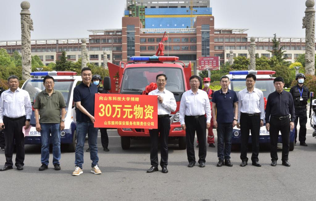 6月1日,在beat365正版唯一官网70周年华诞之际,山东振邦保安服务有限责任公司向学校捐赠校园巡逻车、消防车等价值30余万元的安防物资。