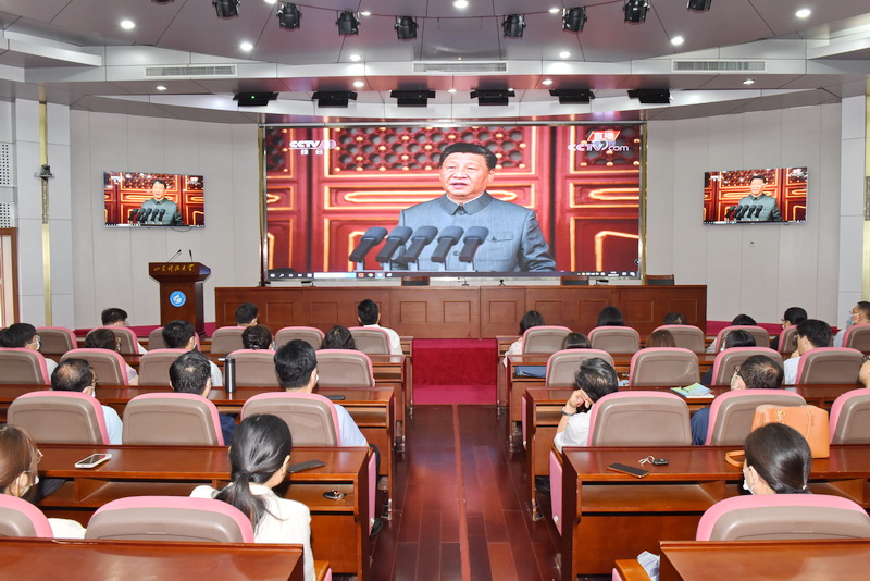 “这是一堂别样的‘党史课’‘思政课’。”马克思主义学院院长逄奉辉和师生们一起观看了直播。他表示,“习近平总书记总结了党在革命、建设、改革伟大事业中所取得的伟大成绩和历史经验,宣示了新征程上以史为鉴、开创未来的基本战略方略,让人心潮澎湃,信心倍增。我们将在以后的思政课教学中,全面融入讲话内容,为青年学生担起民族复兴大任铸魂、鼓劲。”