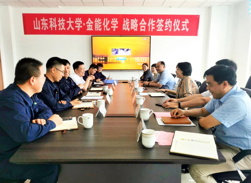 刘红伟介绍了金能化学(青岛)有限公司的基本情况和发展现状,希望双方在既有合作基础上建立长期稳定合作机制,推进全方位、深层次全面合作,打造“产学研用”合作模式,实现校企之间的优势互补、资源共享,在人才培养、科学研究、产学转换、人员交流、社会服务等方面展开全面合作。
