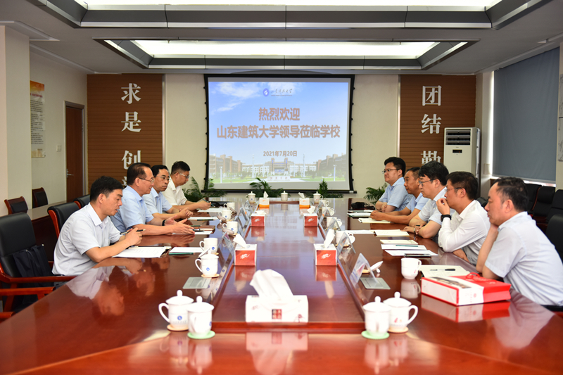 7月20日,山东建筑大学党委书记陈国前,党委副书记、校长于德湖,副校长宋涛一行来校访问,看望校友、原山东建筑大学校长、测绘学院教授靳奉祥。校党委书记罗公利会见了客人。