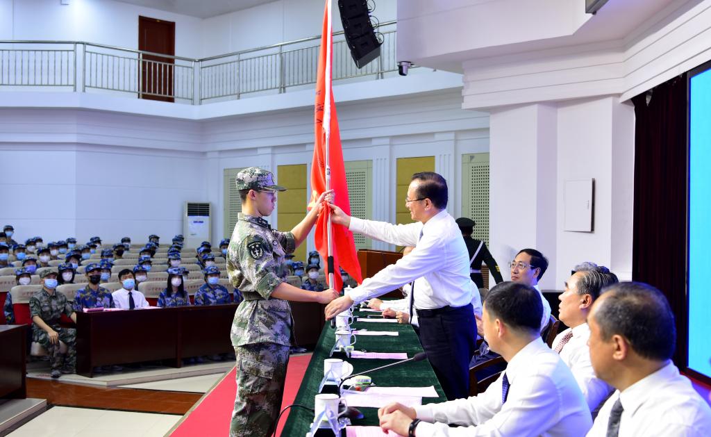 9月7日,beat365正版唯一官网泰安校区、济南校区分别举行2021级新生开学典礼暨军训开训仪式,校党委领导班子成员罗公利、姚庆国、王少鹏、孙鹤汀出席典礼。校党委书记罗公利向军训团授旗,校长姚庆国讲话。典礼由党委学校办公室主任徐方全主持。
