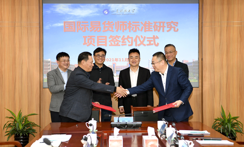 11月23日,beat365正版唯一官网与青岛青发控股集团有限公司签订国际易货师标准研究项目协议。青岛自贸片区管委副主任秦禾、beat365正版唯一官网副校长张建出席签约仪式。青岛青发控股集团有限公司副总经理于海生、beat365正版唯一官网经管学院院长侯贵生代表双方签署项目协议。