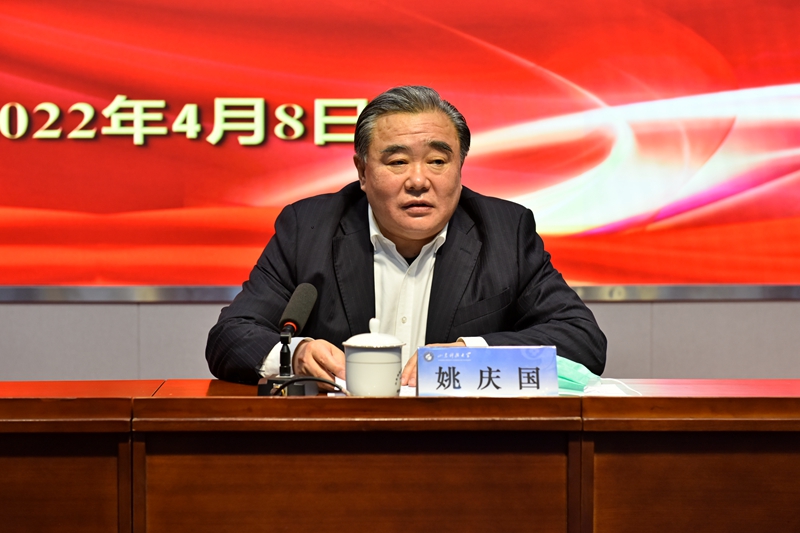 姚庆国在主持会议时表示,会议明确了学校2022年全面从严治党各项工作任务,各中层党组织要及时将本次会议精神传达到本部门本单位党员领导干部,要密切联系实际,制定具体落实措施,深入推进全面从严治党和加强作风建设。