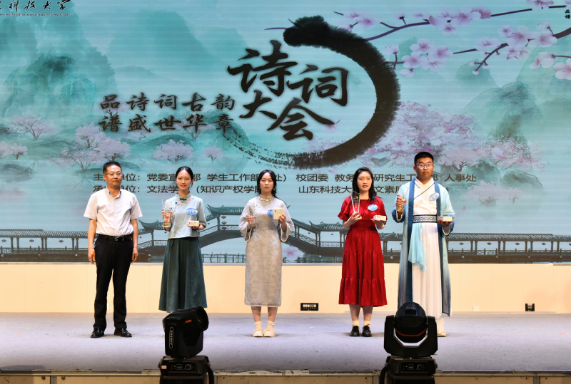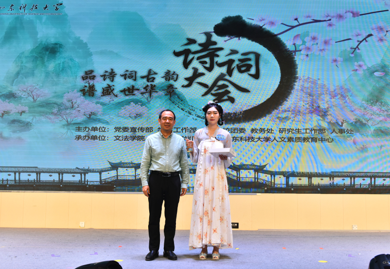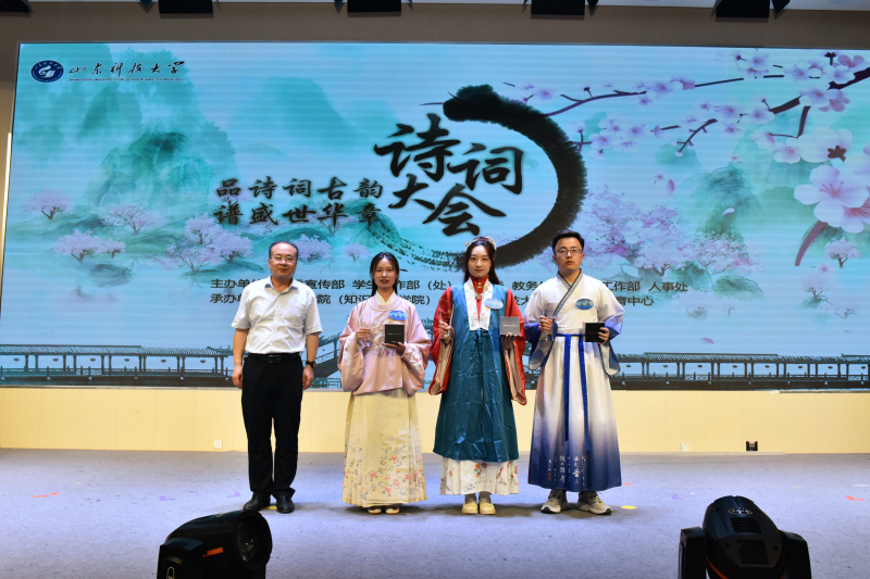 5月28日,beat365正版唯一官网人文素质教育中心成立仪式暨“品诗词古韵 谱盛世华章”诗词大会举办。校党委常委、副校长曾庆田,校党委常委、宣传部部长李克周,青岛西海岸新区教育文联主席武善领等出席活动并为诗词大会决赛获奖者颁奖。