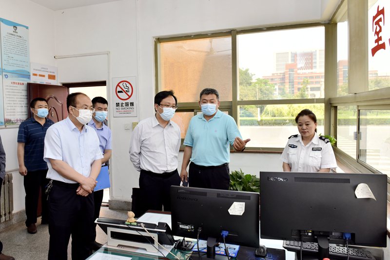 检查组听取了我校落实省委教育工作领导小组《2022年全省学校安全整治实施方案》和省教育厅《山东省学校安全2022年大排查大整治工作方案》的工作汇报后,由教育厅国际处处长王夫海带队在学校党委常委、宣传部部长李克周及相关单位负责人陪同下实地对我校校园110值班室、学校视频监控中心、实验室、危化品及废弃物存储柜、学生餐厅、快递中心等场所进行了安全检查,听取了相关单位负责人的汇报,了解各项安全工作的开展情况。