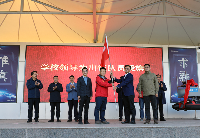 向科考队员授旗