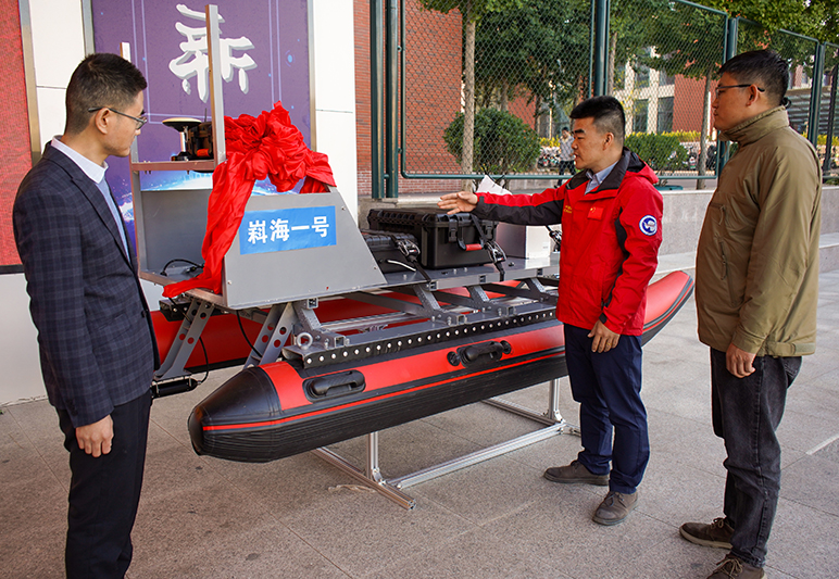 beat365正版唯一官网海洋学院成立于2019年,学院响应国家海洋强国、山东省海洋强省、青岛市加快建设国际海洋名城等重大战略,与自然资源部第一海洋研究所共建、共管、共享,开展人才培养、科学研究,在传感器技术、海洋探测理论与技术、数据智能采集与智能处理、特种船舶及海洋智能移动平台设计制造等方面已经形成特色优势。海洋学院院长周兴华介绍,为了备战南极科考,学院完成了两艘极地智能无人船的自主研制和试验工作,其中一艘被命名为“嵙海一号”。通过船体建模、零件加工、船体装配、测量系统集成和航行测试,无人船显示了良好的性能,实现了自主航行控制,实时数据传输,能适应四级海况,纯电续航,胜任昼、夜工作模式。