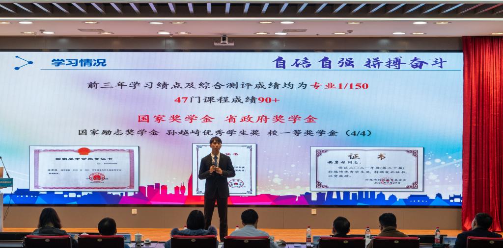 展示台上的候选人,推荐免试攻读硕士研究生、获得国家(省政府)奖学金、国家级(省级)各项大赛奖项,丰富的学生干部工作经历等几乎成为“十大优秀学生”他们的“标配”。来自文法学院的王筠涵,以奋斗为“笔”,努力发挥党员的先锋模范作用,主讲的团课推送至“学习强国”平台,撰写的文章刊登于人民日报,捐赠1.2万元奖学金打造“希望小屋”帮助贫困小学生;来自能源学院的王华国,化身知识博主,录制B站课程视频累计播放量达68万余次,知乎发表10万余字的科普文章,入选知乎“优质创作者海盐计划”,在网络上发出新时代青年最强音;来自安全学院的高鹏,潜心沉淀投身科研,发表录用3篇TOP SCI论文,1篇核心论文,获国家、省级奖项20余项,首位发表发表软件著作权3项、实用新型专利3项、实审发明专利1项……