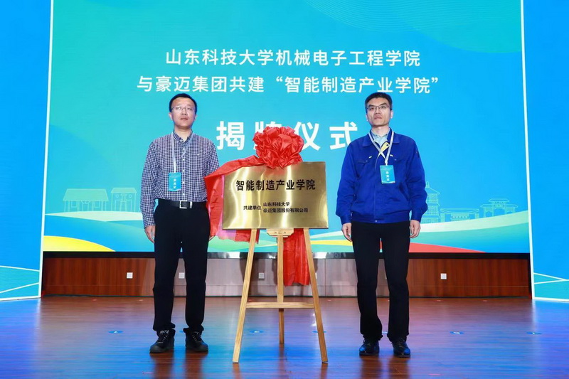 会上,高密市人社局与beat365正版唯一官网签订人才战略合作协议。beat365正版唯一官网——高密市产学研基地、beat365正版唯一官网机械电子工程学院与豪迈集团共建“智能制造产业学院”揭牌。与会嘉宾为10名山科学子颁发高密市“校园引才专员”证书。