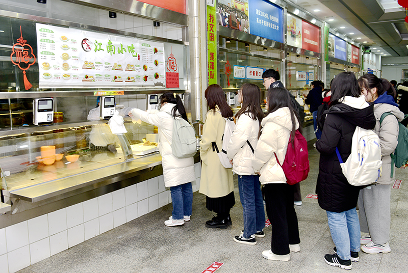 同学们在餐厅排队就餐(任波摄)