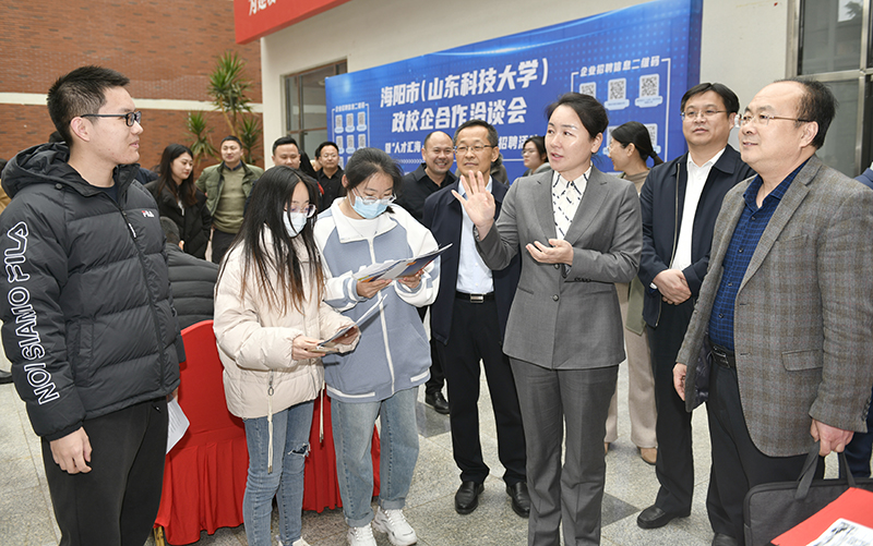 姜丹用“青岛相邻”“青绿相融”“青春相伴”三组关键词,对宜居、宜游、宜业的海阳进行了推介。她表示,海阳市正大力实施“人才汇海”工程,全力打造“山东省青年发展友好型城市”,诚邀科大学子在海阳就业立业、成就自我。