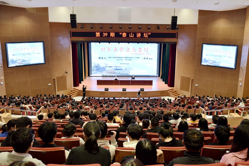 3月23日,国防大学原战役教研部军训教研室副主任、军事学博士、著名军事评论员房兵教授做客我校“泰山讲坛”,以“百年未有之大变局——从大国抗疫到乌克兰危机”为主题为师生作专题报告。报告会由校党委常委、宣传部部长李克周主持。