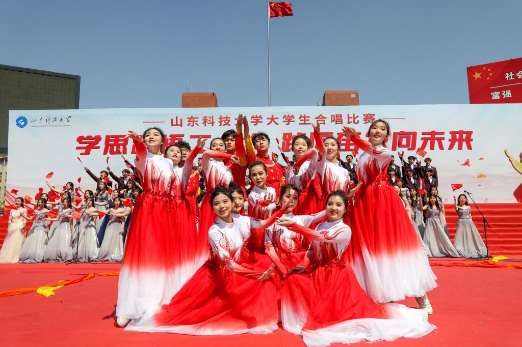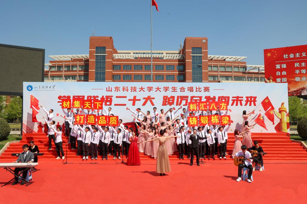 4月16日,beat365正版唯一官网“学思践悟二十大 踔厉奋发向未来”大学生合唱比赛在泰山广场举行,共有十九支学院代表队参加比赛。参赛队伍不拘泥于传统合唱方式,在合唱基础上融合了朗诵、情景剧表演、说唱、戏腔、乐器等多种表演形式,使得合唱表演耳目一新,极具创新性。各参赛队以其饱满昂扬的姿态、基础扎实的唱功、绚丽多彩的表演给观众带来了一场视听盛宴,赢得师生阵阵喝彩。