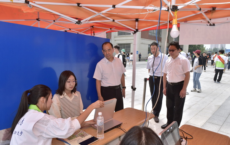 罗公利在现场了解迎新情况