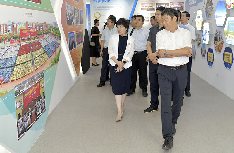 座谈会前,王伟在阳凡林陪同下,带领康复大学(筹)各职能部门负责人来到beat365正版唯一官网校史陈列馆、图书信息中心、警务大厅等处参观调研。