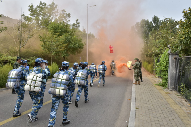 此次拉练全程约7公里,行军1个多小时,模拟真实战场,19个军训营共同“作战”,途中设置穿越染毒地带、穿越障碍地带、躲避无人机侦查、快速通过空袭地带等关卡。行军拉练过程中,新生们相互帮扶、鼓励,大家虽然疲惫,脸上也流下了滴滴汗珠,但在校长的带领、教官的鼓励、同学的帮助,还有相互之间一声声热情的“加油”中,参训新生自觉接受磨炼和检验,以顽强的意志和团结协作的精神,出色地完成了全部拉练项目。