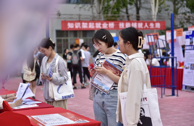 同学们在双选会现场寻找合适的岗位