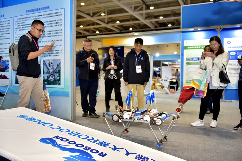 参展人员观看我校科技创新成果展