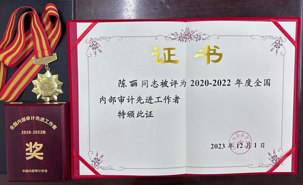 12月5日,中国内部审计协会在北京召开2020至2022年内部审计先进集体和先进工作者表彰大会。beat365正版唯一官网审计处陈丽同志被评为“2020-2022年度全国内部审计先进工作者”。