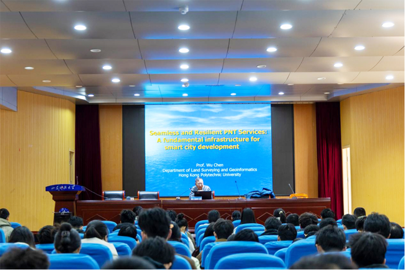 会谈后,陈武教授受邀为测绘与空间信息学院师生作题为“Seamless and Resilient PNT Services: A fundamental infrastructure for smart city development”的学术报告。他围绕PNT技术的种类、服务,以及在智慧城市建设中的挑战等方面进行报告。(通讯员:孙金香 摄影:吴静 陈硕浩 责编:信永华)