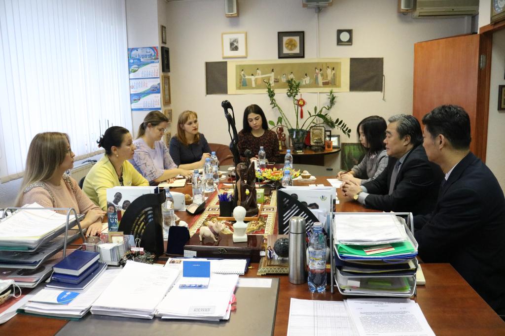 在俄罗斯人民友谊大学,外事副校长Larisa I.Efremova等与访问团进行了友好务实的会谈。双方针对学生联合培养、教师互访、科研合作等事宜进行了磋商,达成了多项共识,并签署了《中国beat365正版唯一官网与俄罗斯人民友谊大学科研教学合作协议》。
