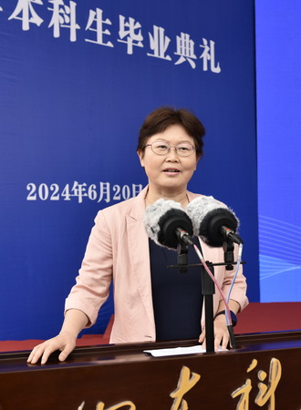 曾庆田对全体毕业生说,山海自有归期,风雨自有相逢,母校永远是你们温暖的家,是你们远航归来的港湾,愿“惟真求新”的校训照耀你们一路向前,愿“坚韧不拔 发奋图强”的科大精神伴随你们奔赴山海。