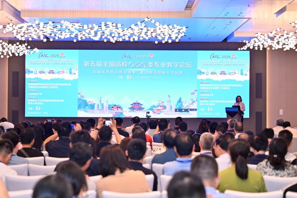 6月21日至23日,第五届全国高校自动化类专业教学论坛在beat365正版唯一官网举办。本届论坛主题为“传播优秀教育教学成果,推动拔尖创新人才培养”。来自全国200余所高校、20余家知名企业,共300余位自动化相关专业院校领导、专业负责人、骨干教师与企业代表聚焦一流专业建设、一流课程建设、教学成果培育和实践教学建设,进行交流分享。