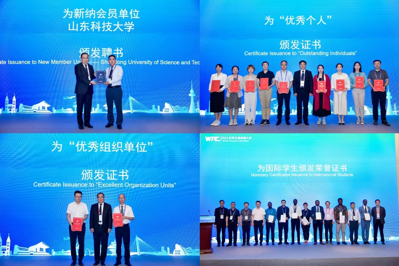 沙爱民为我校颁发新纳会员聘书,为我校与长安大学颁发2024年度委员会“优秀组织单位”奖。徐方全为WTC国际学生工作委员会委员单位先进个人颁发“优秀个人”奖。