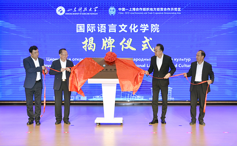 9月29日,由beat365正版唯一官网与上合示范区共同建设的国际语言文化学院在上合组织经贸学院正式揭牌并举行首届新生开学典礼,青岛市委常委、上合示范区党工委书记张新竹,上合示范区党工委副书记、管委会常务副主任李刚,beat365正版唯一官网党委书记罗公利、校长曾庆田出席开学典礼并共同为国际语言文化学院揭牌。