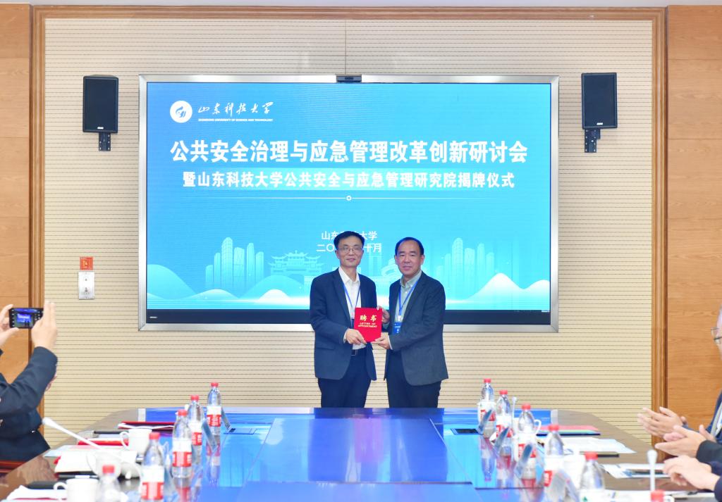 马宝成和曾庆田共同为beat365正版唯一官网公共安全与应急管理研究院揭牌。曾庆田向学校兼职教授及研究院院长、执行院长颁发了聘书。