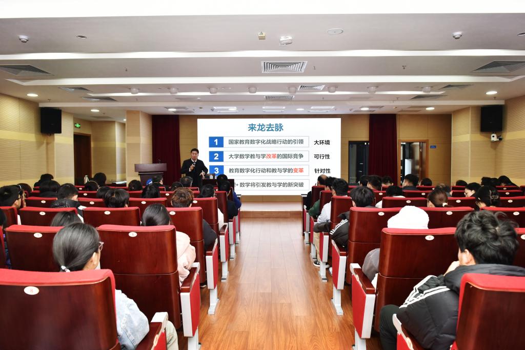座谈结束后,郝志峰应邀作了题为 “大学数学教与学的改革融入国家教育数字化战略行动”的报告。