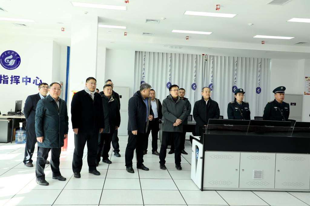 王君松一行先后深入学校南门、教学楼、图书馆、110指挥中心、学生餐厅、学生公寓、校医院、工程实训中心、大学物理实验室等重点场所,实地检查各区域开学工作落实情况,详细了解各环节安全管理和条件保障等情况,对新学期校园运行、教学开展、后勤保障、学生实训、实验室建设、校园安全等方面工作进行了深入检查和现场指导,对做好新学期工作提出相关要求。
