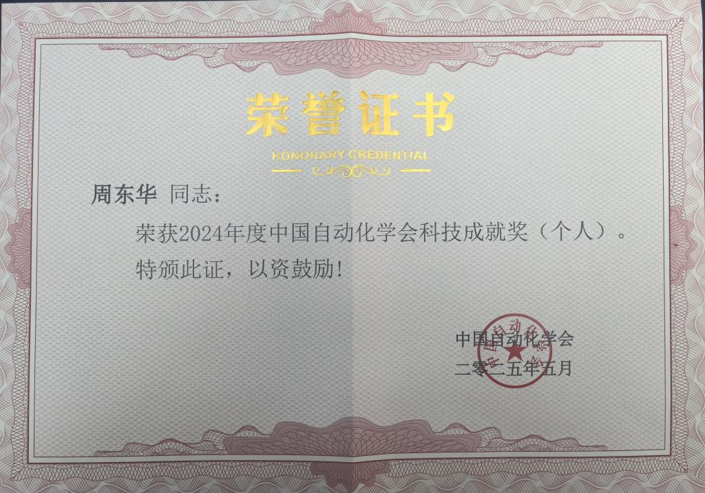 5月25日,2024年度中国自动化学会科学技术奖励颁奖仪式在北京举行,我校周东华教授获2024年度中国自动化学会科技成就奖(个人)。