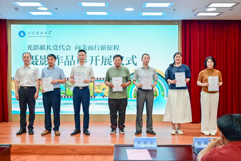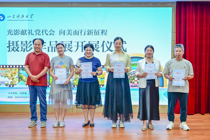 6月19日,“光影献礼党代会 向美而行新征程”摄影作品展开展。校党委副书记刘明永、青岛西海岸新区摄影家协会主席赵国富等为“光影献礼党代会 向美而行新征程”摄影大赛获奖摄影家、师生代表颁奖。校党委常委、宣传部部长李克周,青岛西海岸新区摄影家协会名誉主席韩加君分别致辞。后勤管理处处长韩汝军宣读摄影大赛获奖名单。后勤管理处、图书馆、校文联负责人,青岛校区各中层党组织书记、师生代表及来自中国摄影家协会、山东省摄影家协会、青岛市和西海岸新区摄影家协会的50余名摄影家参加开展仪式。