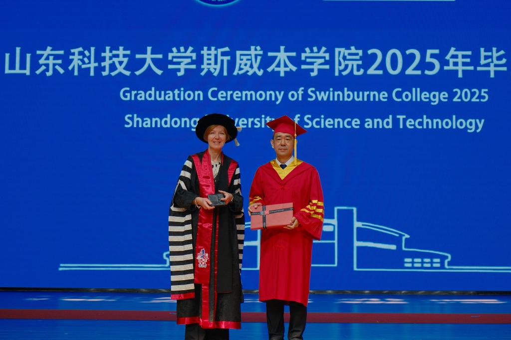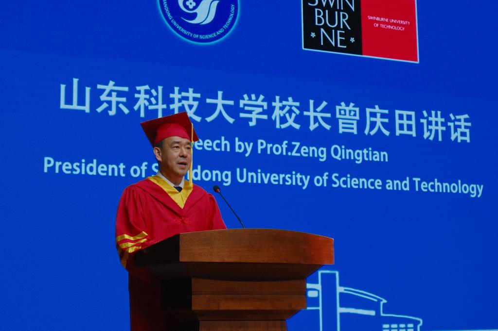 曾庆田强调,斯威本学院首届毕业生见证了学院的蓬勃发展,也实现了个人的成长蜕变。面对即将远行的学子,他深情寄语,一要厚植家国情怀,弘扬“留学报国”传统。无论身处何方,都要时刻关注国家发展需求,坚决维护国家利益,让“留学报国”的红色传统绽放更加耀眼的光芒。二要树立全球视野,应对“智能多元”挑战。以开放的视野、包容的心态在应对全球性挑战中彰显青年担当,在逐梦之路上奋力前行,在变局中开拓人生新局。三要砥砺奋斗精神,擦亮“实干兴邦”底色。在专业领域里勇攀高峰,在岗位实践中淬炼真知,在国际竞争中彰显中国力量,以平凡铸就非凡,从优秀实现卓越,让璀璨年华与家国同频,与时代共进。