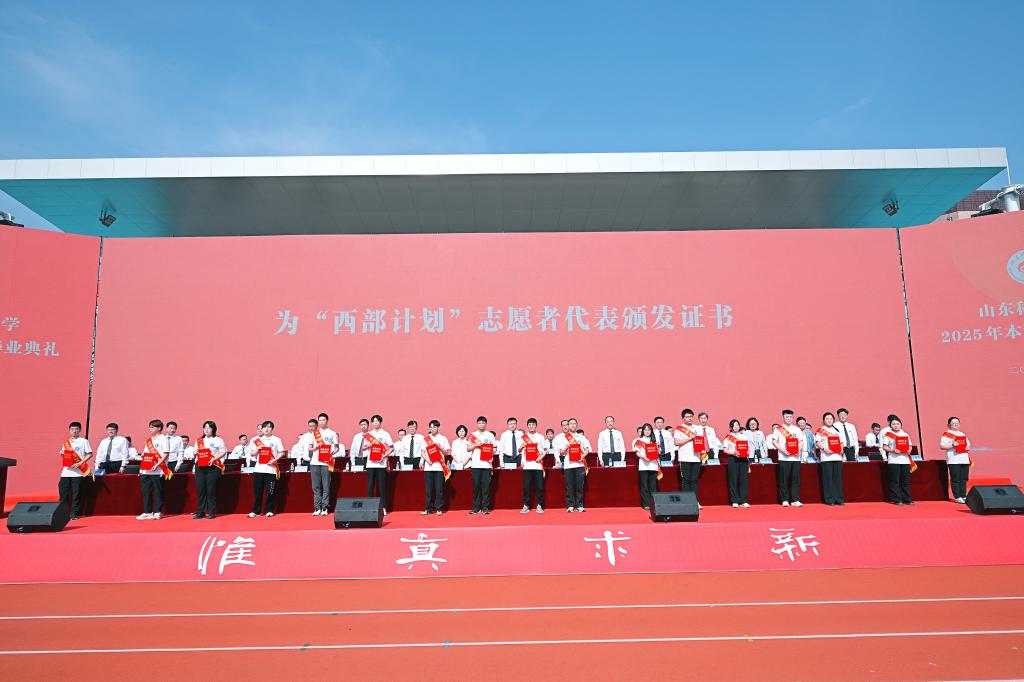 同期,泰安、济南校区于6月27日分别举行2025年毕业典礼,校领导王君松、曾庆田、徐方全、诸葛福民、董海荣及泰安校区、济南校区相关部门、学院(部)负责人,校友代表,2025届全体毕业生和教师代表参加了典礼。