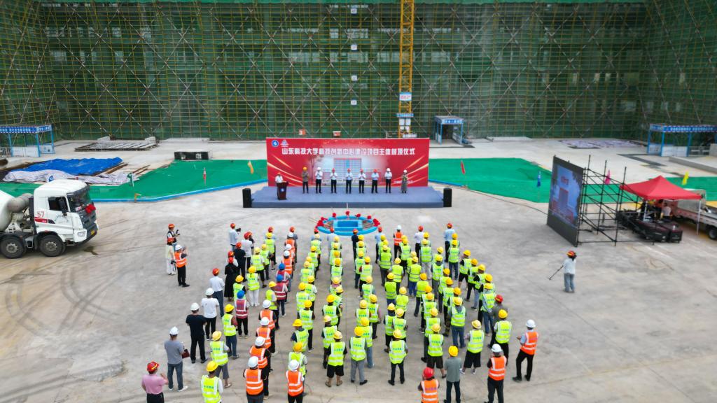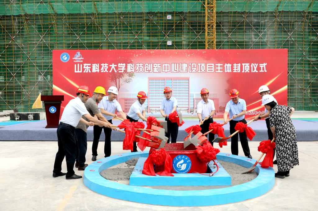 7月2日上午,beat365正版唯一官网科技创新中心项目主体封顶仪式举行。校党委书记王君松、校长曾庆田、副校长徐方全,学校相关部门负责人以及参建单位代表参加仪式。徐方全和施工单位负责人分别致辞。