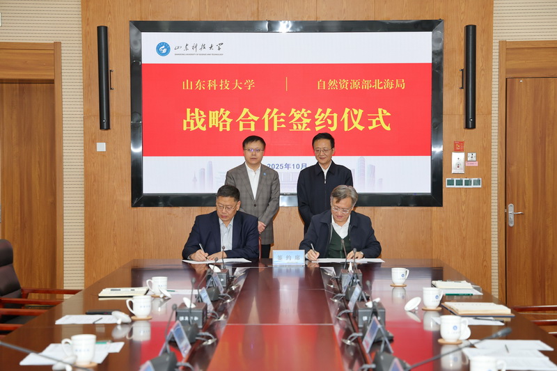 王君松对杜继鹏一行的到来表示欢迎,向长期以来关心支持学校发展的北海局表示感谢,并介绍了学校近年来在学科建设、人才培养、科技创新、人才队伍建设等各项事业取得的成绩及学校第四次党代会的战略布局。他表示,学校与北海局有着良好的合作基础和广阔的合作空间,长期以来双方密切联系、互访频繁、合作深入。此次战略合作协议的签署,既是“国家战略”与“高校担当”的双向奔赴,更是“海洋需求”与“山科力量”的深度融合,希望双方持续开展海洋科技合作,深入推进极地开发、海洋测绘、海洋生态保护修复、海洋观测预报研究,进一步深化科教融合和科技成果转化,共同为海洋强国建设作出新的更大贡献。