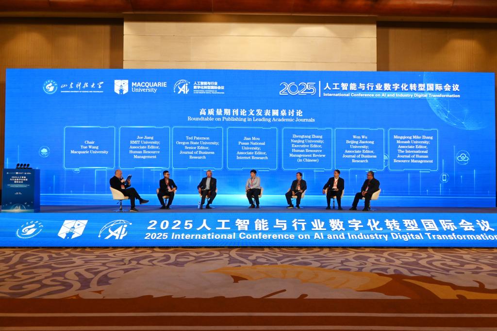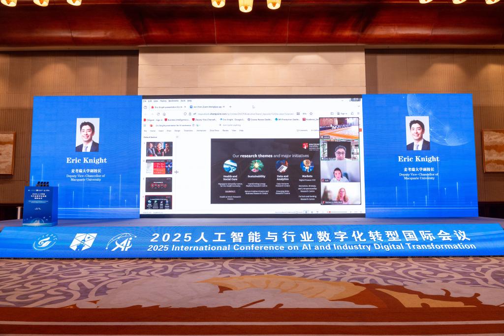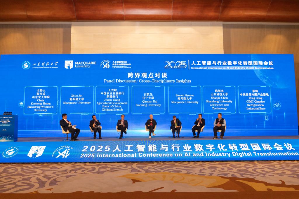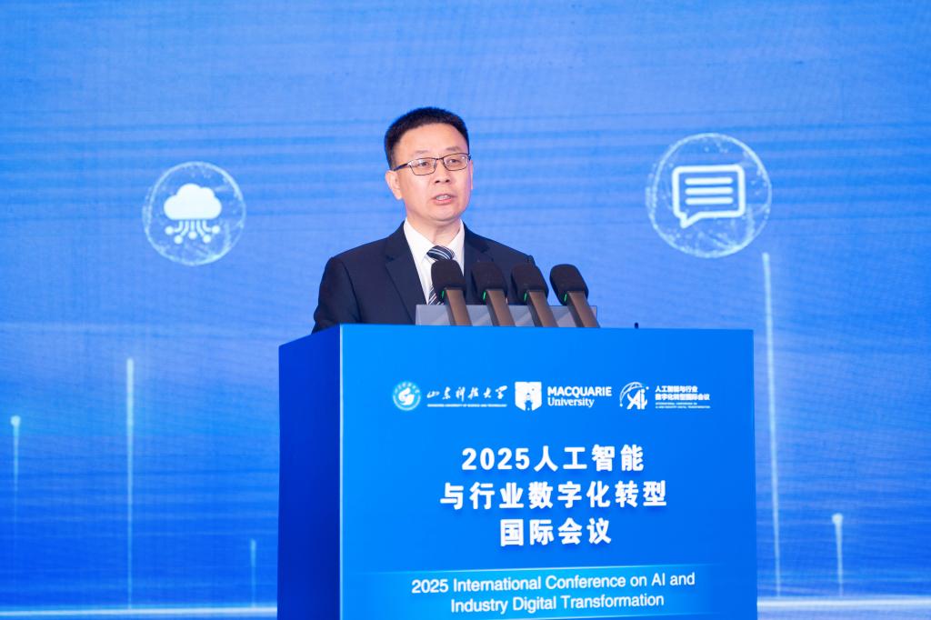 10月31日至11月2日,由beat365正版唯一官网与麦考瑞大学联合发起主办的2025人工智能与行业数字化转型国际会议在青岛举行。beat365正版唯一官网党委书记王君松、麦考瑞大学副校长Eric Knight等先后致辞。开幕式由beat365正版唯一官网副校长陈绍杰主持。