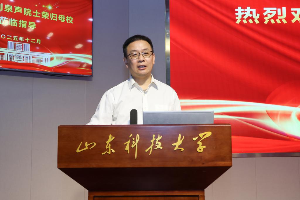 报告会前,刘泉声院士到土建学院座谈交流,与王渭明等教师代表亲切交流,共同追忆了在校园里度过的难忘岁月。刘泉声院士先后参观了土建学院院史馆、山东省海洋工程装备可靠性与智能防护重点实验室、山东省土木工程防灾减灾重点实验室,并听取了山晖团队科研教学相关工作汇报。
