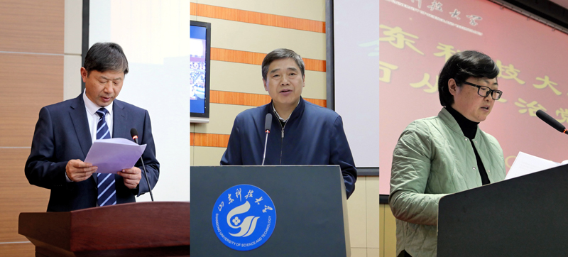 校党委领导班子成员尹华、王少鹏、周东华、孙鹤汀、张英杰、李克周、陈涛出席会议。全校处级以上干部、机关科级干部参加了会议。泰安校区党委常务副书记刘传玺、机关一党委书记吴强、地科学院党委书记高慧、化工学院党委书记李垂文、艺术学院党委书记王凯等5个部门单位代表作大会交流发言。
