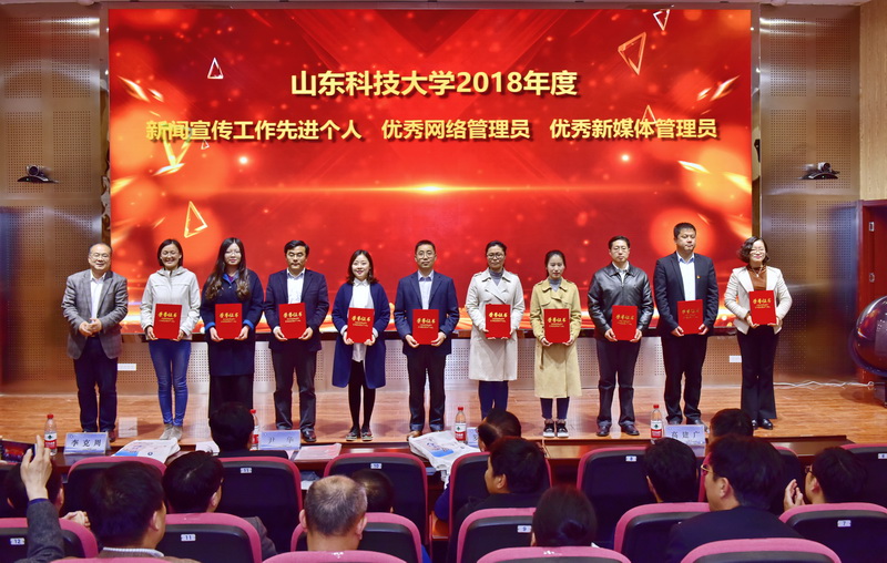 会议表彰了2018年度新闻宣传工作先进单位、新闻宣传工作先进个人、明星网站、优秀网络管理员、优秀微信公众号、优秀新媒体管理员等,表彰了2018年度十佳学生记者、优秀学生编辑、优秀学生播音员、优秀学生讲解员等,罗公利、尹华、高建广、李克周、王震为获奖单位和个人代表颁奖。