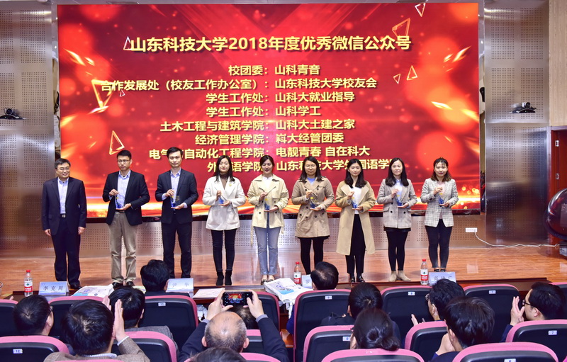 校党委书记罗公利出席会议并为获奖代表颁奖,校党委副书记尹华发表讲话,校党委常委、宣传部部长李克周总结部署工作。校党委书记罗公利,校党委副书记尹华,校党委常委、副校长高建广,教师代表张兴华,学生代表孟磊共同发布“掌上山科”客户端
