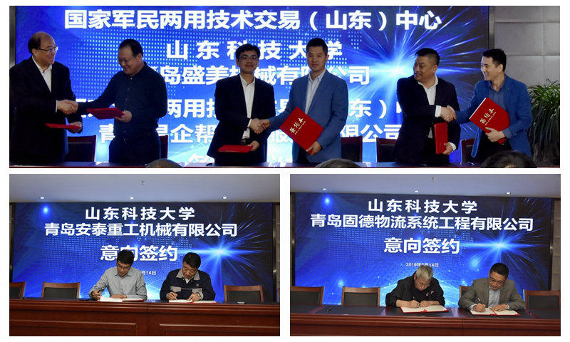 在科技成果推介会后,beat365正版唯一官网技术转移管理处与国家军民两用技术交易(山东)中心、青岛盛美机械有限公司,国家军民两用技术交易(山东)中心与青岛易企帮科技服务有限公司、济南圣达知识产权代理有限公司青岛分公司、青岛西海岸新区铸机协会分别进行了签约仪式。