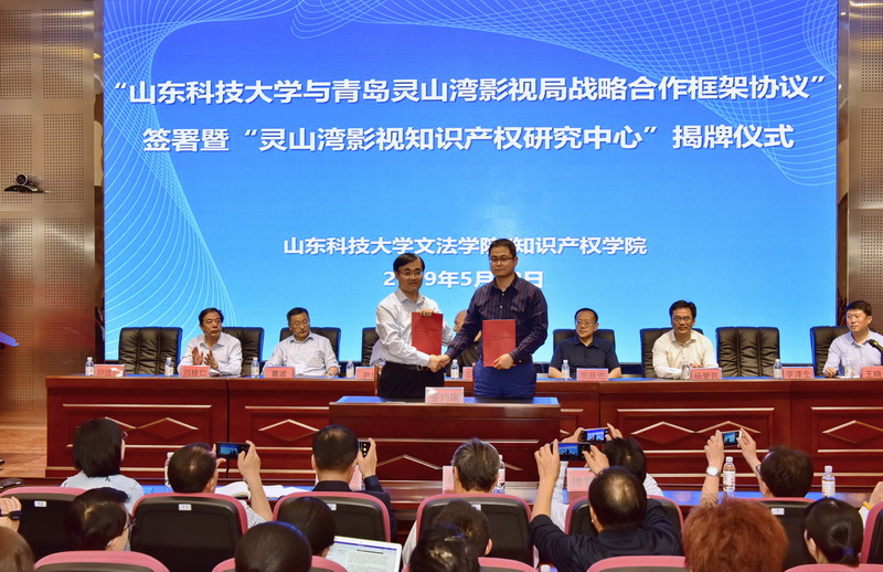 来校期间,田力普和尹华共同为“灵山湾影视知识产权研究中心”和“beat365正版唯一官网影视知识产权研究与教学实践基地”揭牌,青岛灵山湾影视局副局长李泽全和文法学院/知识产权学院院长孙法柏签署《beat365正版唯一官网与青岛灵山湾影视局战略合作框架协议》。