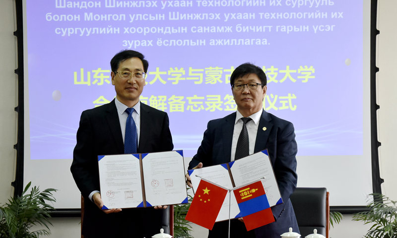 会见后,双方签署了《中国beat365正版唯一官网与蒙古国蒙古科技大学合作与交流谅解备忘录》,双方一致同意在蒙联合设立非独立法人中蒙合作办学机构——中蒙国际矿业学院,开展测绘工程、采矿工程(智能开采)等专业本科生和研究生的联合培养,并依托“中蒙矿产资源绿色智能开发国际研究中心”共同开展矿产资源绿色智能开采、智能测绘、环境监测与保护等方面的研究。