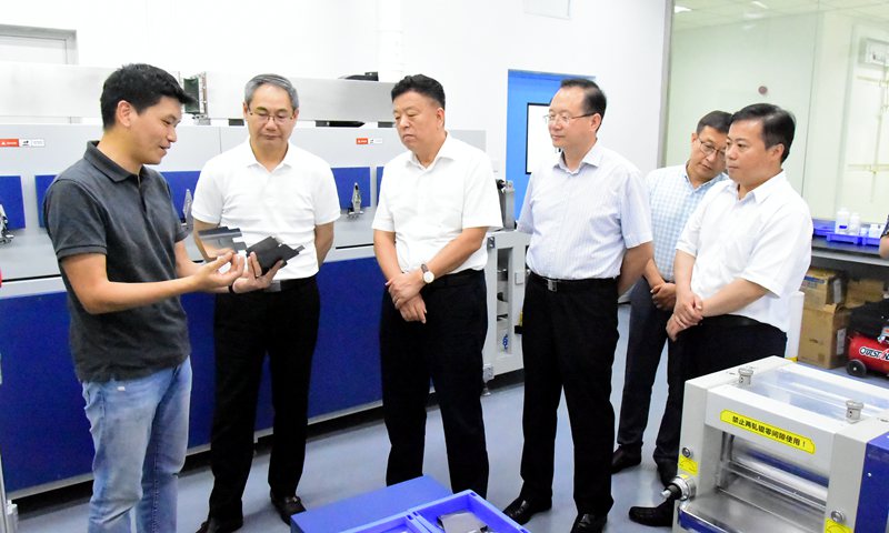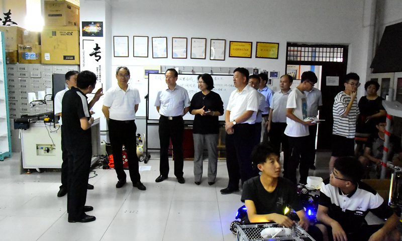 曲道奎、王国法、谢龙目一行实地调研了自动化学院人才团队和实验室建设情况。在青岛市铝离子动力和储能电池顶尖人才团队、山东省泰山学者优势特色学科人才团队,李玉霞介绍了两个团队建设情况、科研进展和取得的社会效益,曲道奎、王国法、谢龙目一行对两个团队取得的成就表示高度赞赏。