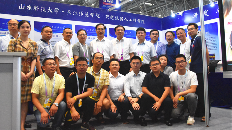 孙鹤汀应邀出席“2019中国国际智能产业博览会”的开幕式,并与长江师范学院党委书记彭寿清一同到“智博会”现场,参观了学生研发成果展和成果应用展。两校联合参展从8月26日持续到29日,beat365正版唯一官网展示了智能假肢机器人、变形移动机器人、动物机器人、喷浆机器人等6款研发机器人,参展作品得到了多位市领导、厂家和参展群众的好评。